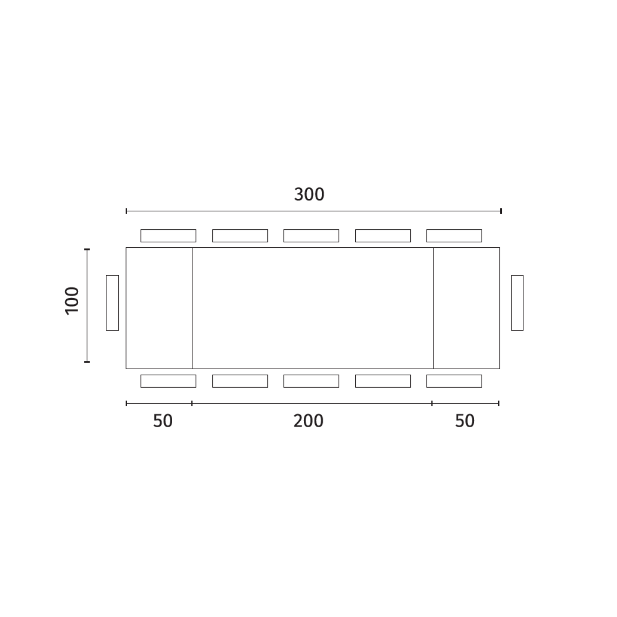 Disponibile in due varianti di misura, il tavolo si estende facilmente da 160 cm a 240 cm grazie a due allunghe esterne da 40 cm ciascuna, oppure da 200 cm a 300 cm con due allunghe esterne da 50 cm. Le allunghe sono facili da posizionare e permettono di aumentare lo spazio disponibile senza compromettere l’equilibrio estetico del tavolo.