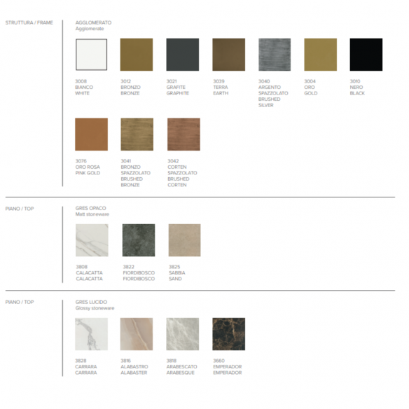 Tavolo allungabile TWIST con struttura in agglomerato e piano in gres opaco o lucido disponibile in due misure.