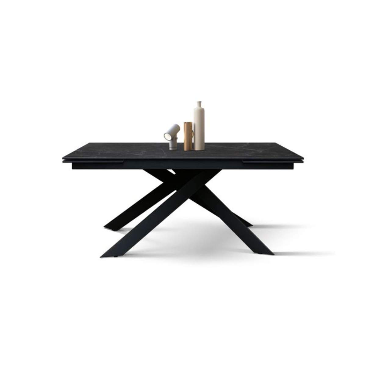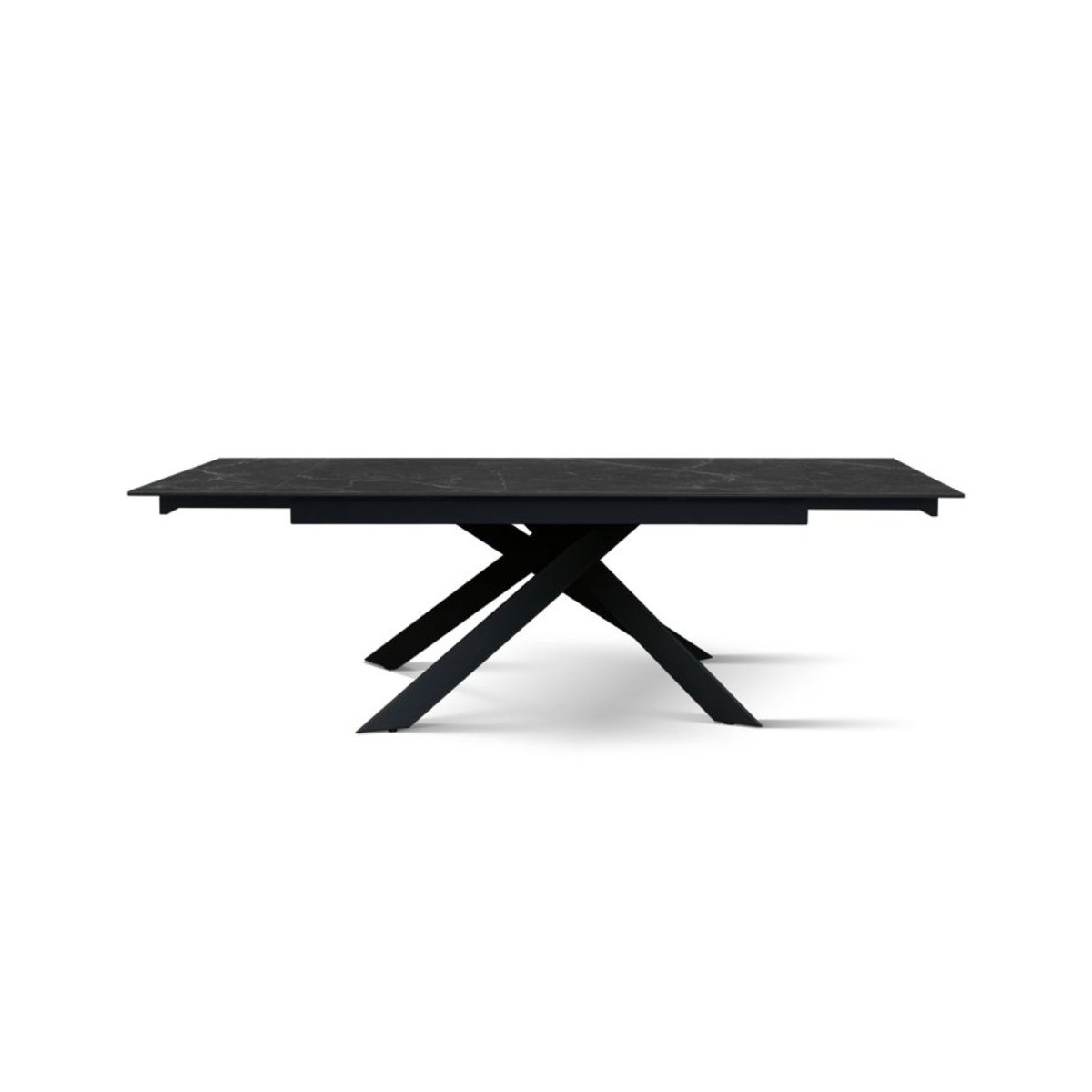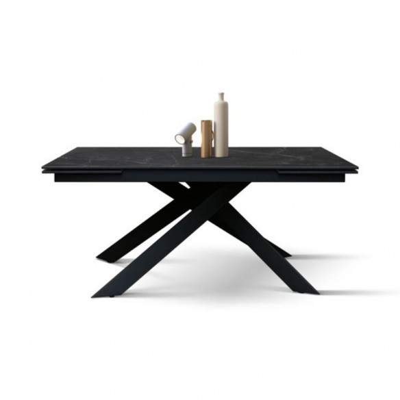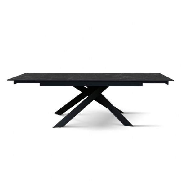 Tavolo allungabile VENERE con base in metallo colore nero, piano opaco in ceramica finitura marmo nero con 2 allunghe da 40 cm