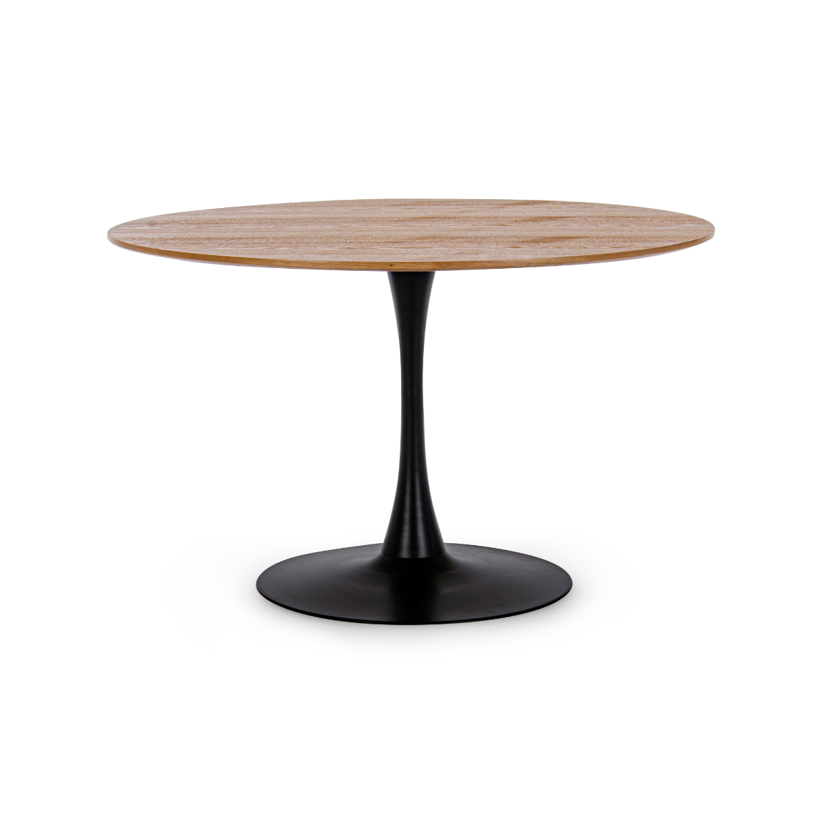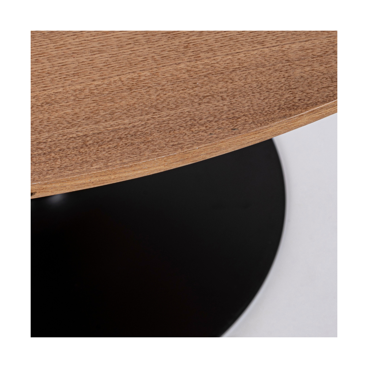 La base in acciaio verniciato a polvere garantisce stabilità e resistenza, mentre il piano in MDF è rifinito con rivestimento in poliuretano (PU) o con impiallacciatura effetto legno, protetta da una finitura trasparente che ne esalta le venature e la durata nel tempo.