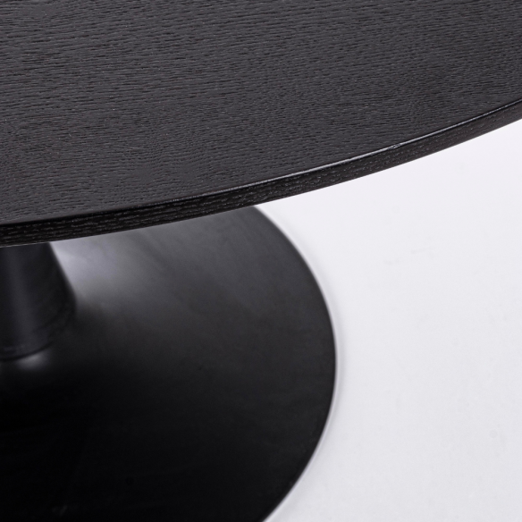 La base in acciaio verniciato a polvere garantisce stabilità e resistenza, mentre il piano in MDF è rifinito con rivestimento in poliuretano (PU) o con impiallacciatura effetto legno, protetta da una finitura trasparente che ne esalta le venature e la durata nel tempo.