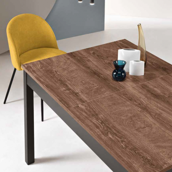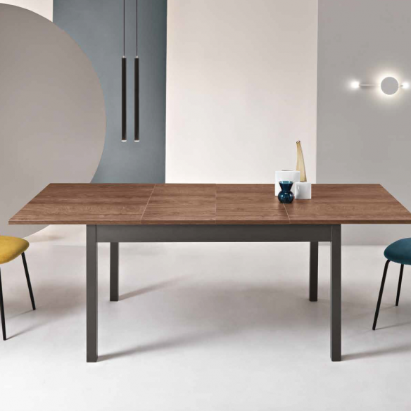 Tavolo allungabile con due allunghe centrali da 40 cm. Disponibile in diversi colori.