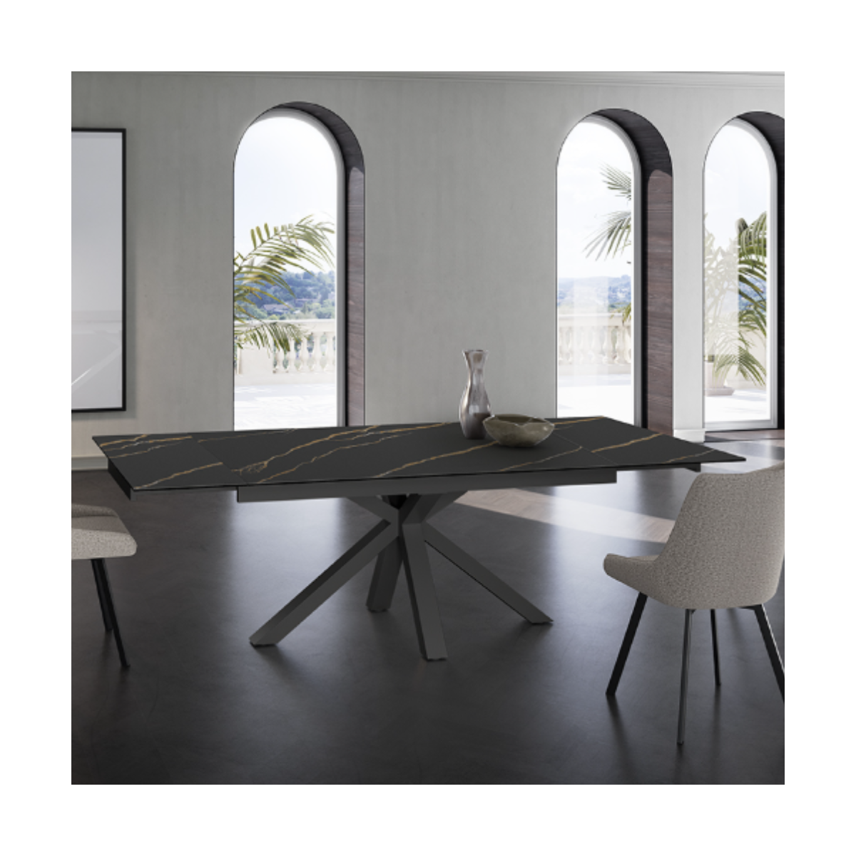 Tavolo allungabile CERAMICA 1 con struttura in metallo e piano in ceramica.