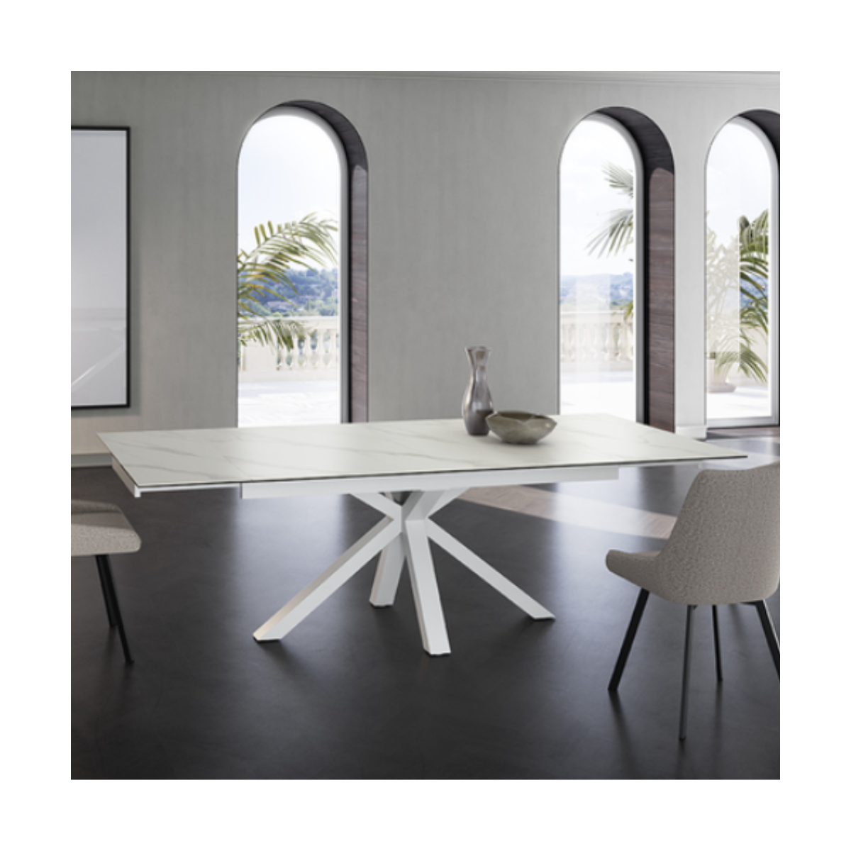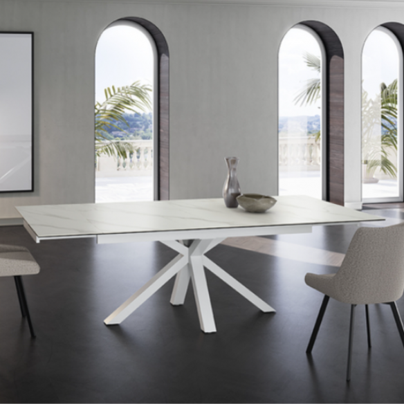 Tavolo allungabile CERAMICA 1 con struttura in metallo e piano in ceramica.