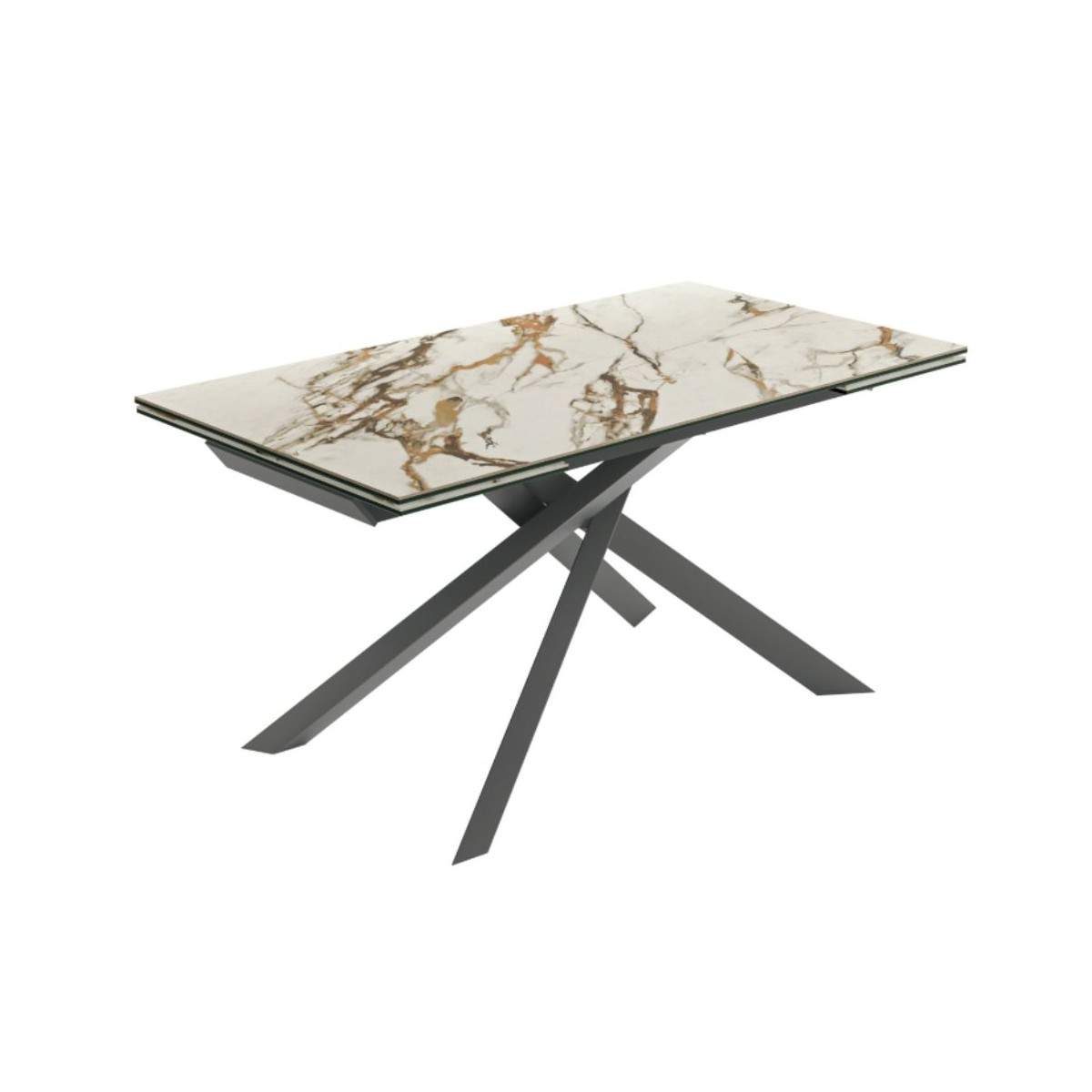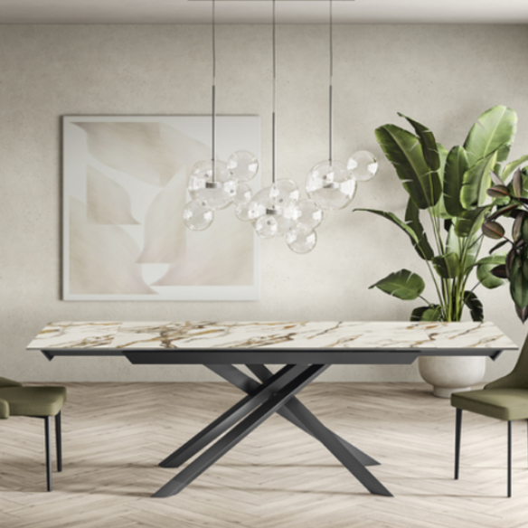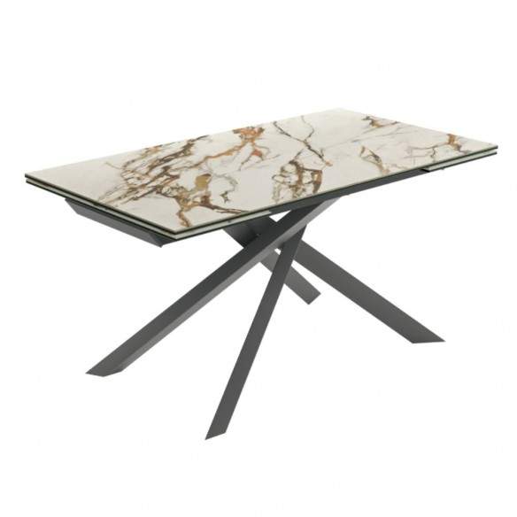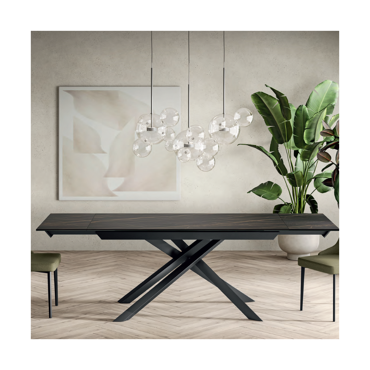 Tavolo allungabile CROSS con struttura in metallo verniciato e spiano in ceramica.
