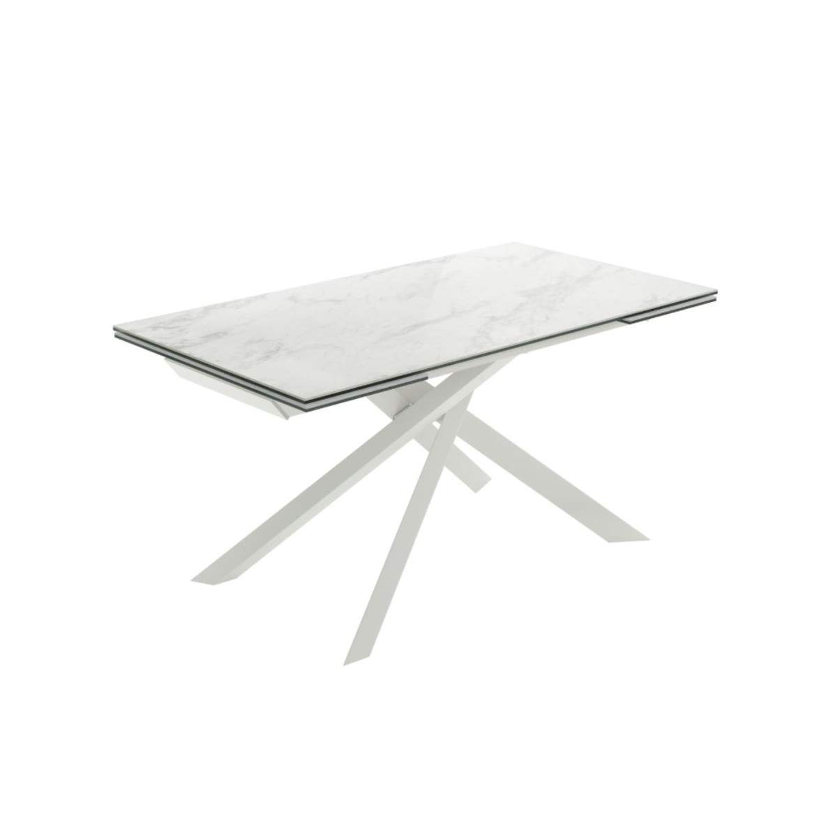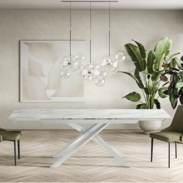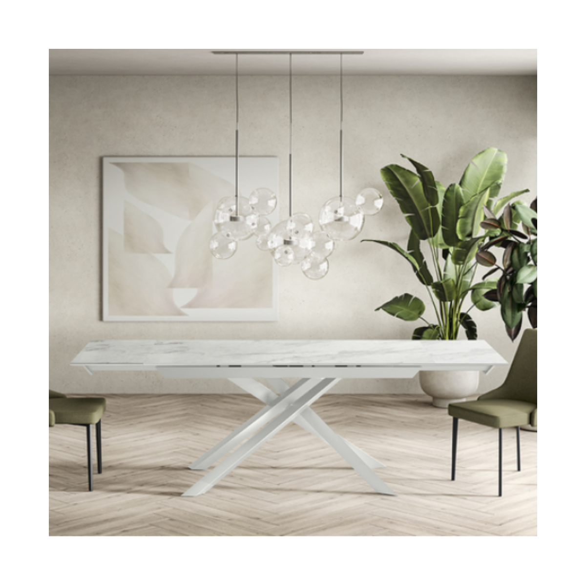 Tavolo allungabile CROSS con struttura in metallo verniciato e spiano in ceramica.
