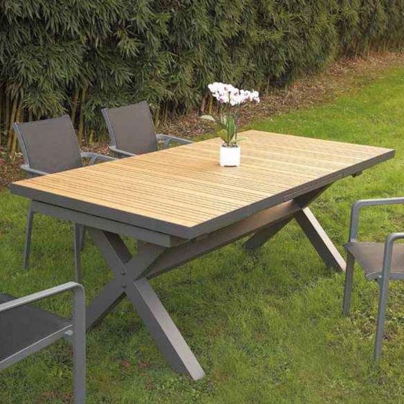 Tavolo allungabile da giardino VESPUCCI con verniciatura per esterno antracite e piano listelli teak massello.