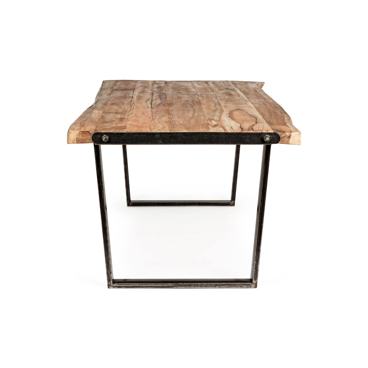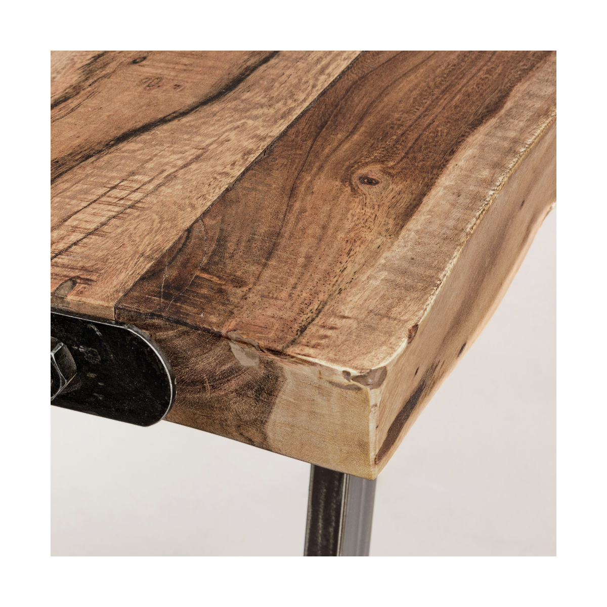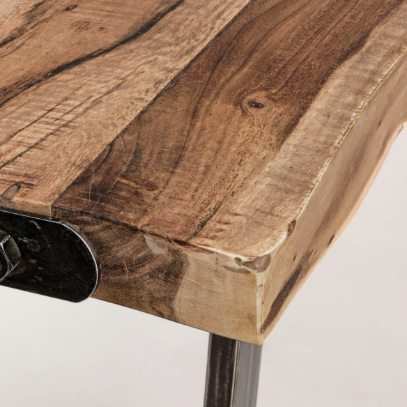 Il tavolo Elmer di Homemotion è un pezzo d'arredo unico, che unisce materiali naturali e design industriale. Le gambe in acciaio verniciato a polvere epossidica conferiscono stabilità e un’estetica moderna, mentre il piano, ricavato da sezioni originali di tronco in legno di acacia, regala al tavolo una presenza autentica e irripetibile.