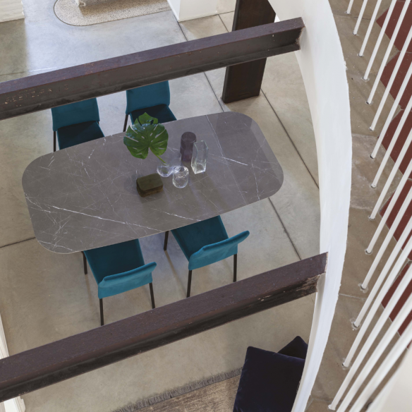 Il piano in ceramica a botticella è il vero protagonista di questo tavolo: sofisticato e resistente, unisce l’estetica ricercata della ceramica alla praticità di un materiale altamente durevole e facile da pulire. La forma raffinata ed ergonomica dona un tocco di esclusività, rendendo il tavolo EMPIRE PLUS la scelta ideale per valorizzare sia ambienti domestici che spazi di rappresentanza.