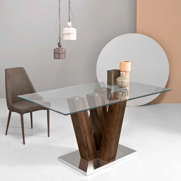 Un tavolo che combina eleganza e modernità, perfetto per valorizzare qualsiasi ambiente. La struttura in metallo cromato offre un supporto robusto e brillante, mentre il piano in vetro trasparente aggiunge leggerezza e stile contemporaneo.
