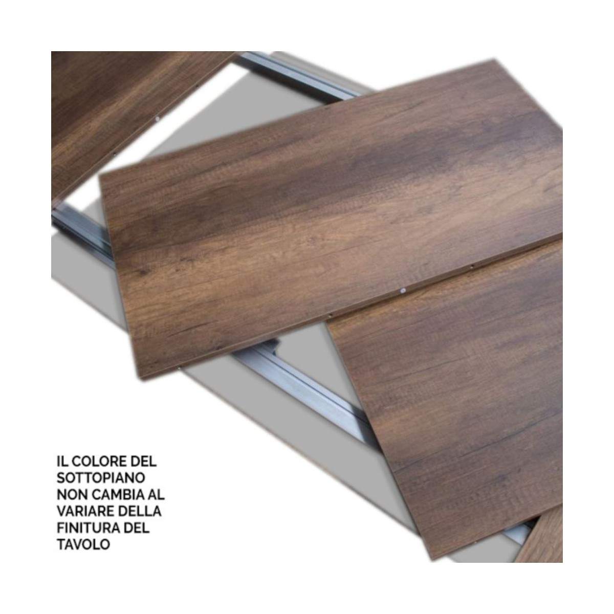 Le allunghe non trovano collocamento all’interno della struttura del tavolo e vanno quindi riposte altrove.