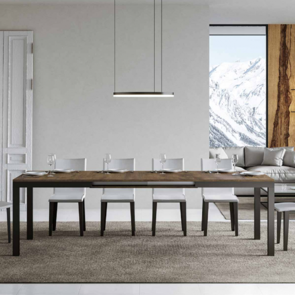 Tavolo allungabile EVERYDAY EVOLUTION con struttura in metallo antracite e piano in nobilitato.