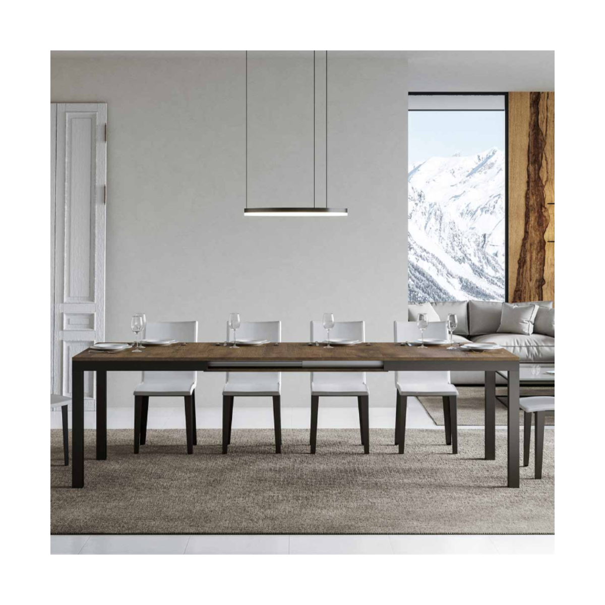 EVERYDAY EVOLUTION è disponibile in diverse dimensioni, così da adattarsi con naturalezza sia agli spazi più contenuti che a quelli più ampi. La sua vera forza? Le allunghe, riposte ordinatamente sotto il piano, che ti permettono di ampliare la superficie in modo semplice e veloce, senza ingombri o complicazioni. Un dettaglio che lo rende estremamente funzionale, perfetto per ospitare amici e familiari con la massima comodità.