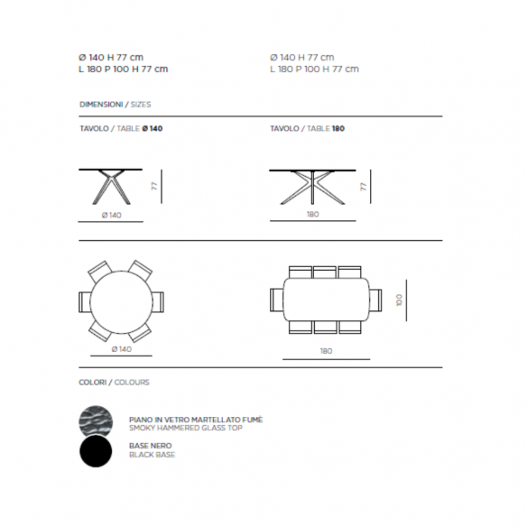 - Ø 140/Altezza: 77 cm