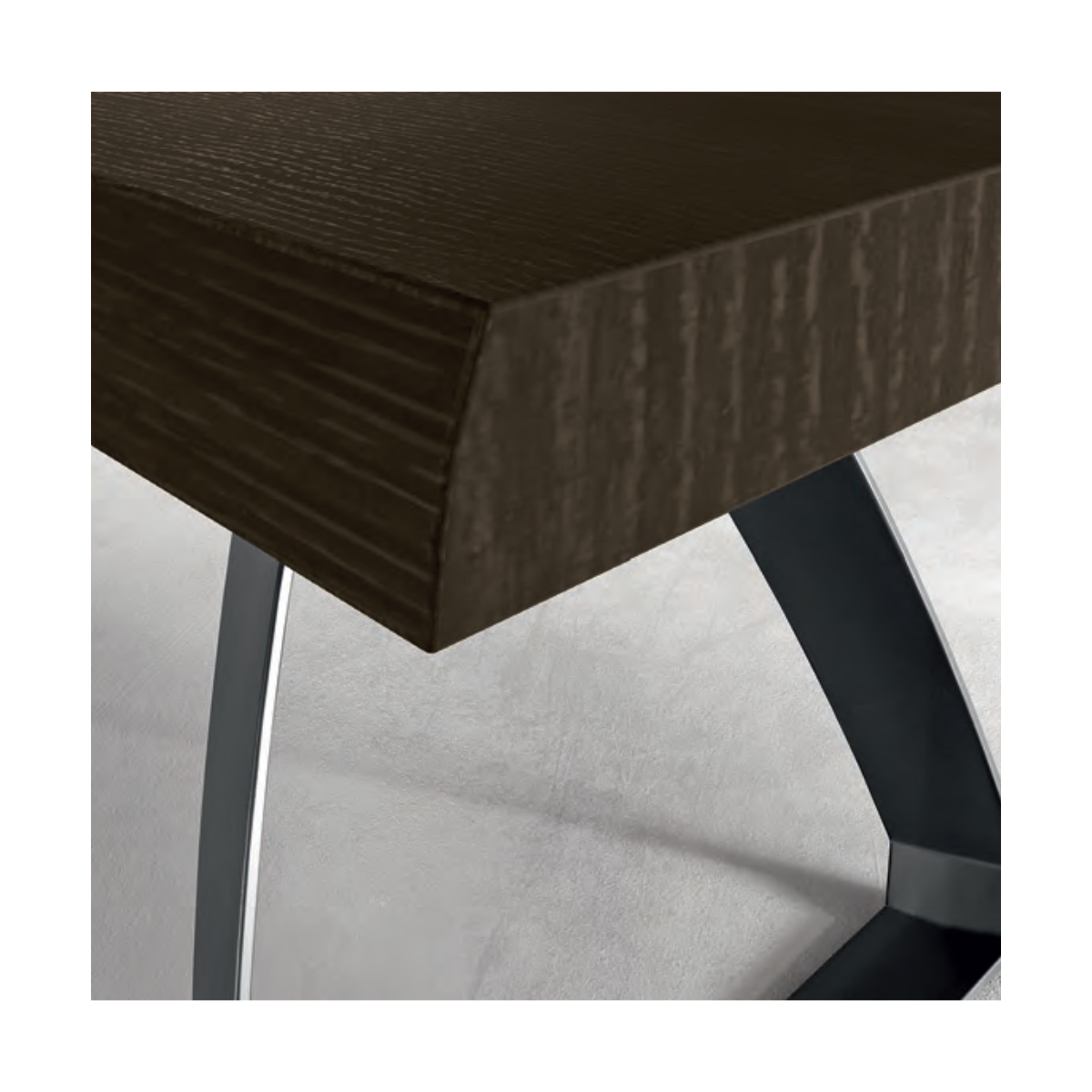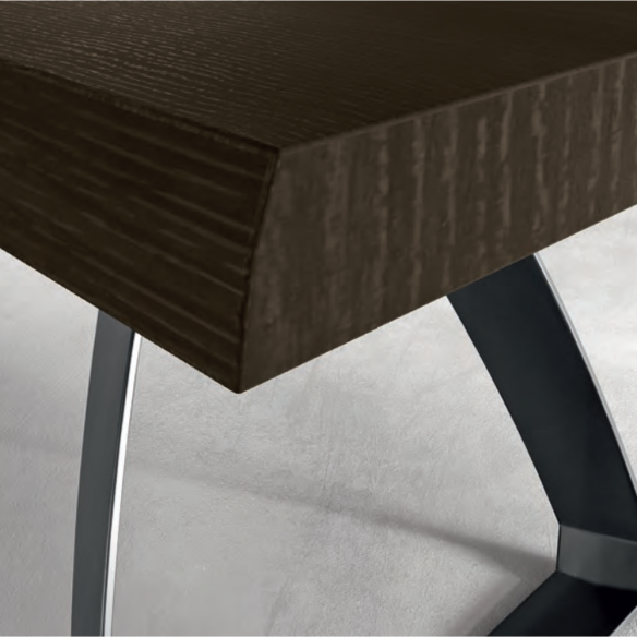 La base in metallo, dal design geometrico e minimalista, dona solidità e carattere, mentre il piano in legno impiallacciato regala una sensazione di accoglienza e naturalezza. Un contrasto perfetto che rende BRIDGE adatto sia agli spazi arredati in stile industriale sia agli ambienti più contemporanei o scandinavi, dove la semplicità si fonde con la cura dei materiali.