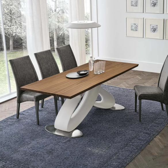 Tavolo fisso ECLIPSE rettangolare con struttura in poliuretano e piano in legno.