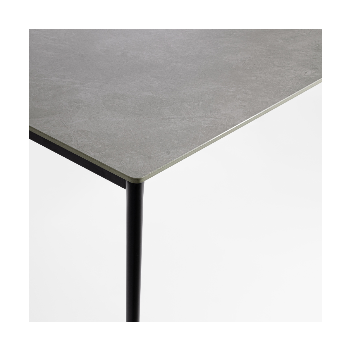 La struttura in acciaio verniciato a polvere epossidica garantisce resistenza, stabilità e una lunga durata nel tempo. Il piano in gres porcellanato effetto marmo aggiunge un tocco di classe all’arredamento: è solido, facile da pulire e altamente resistente a graffi, calore e umidità.