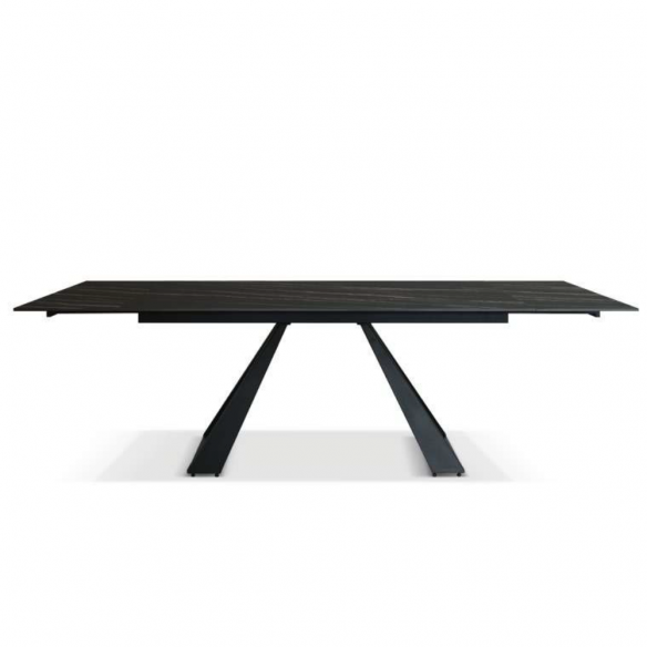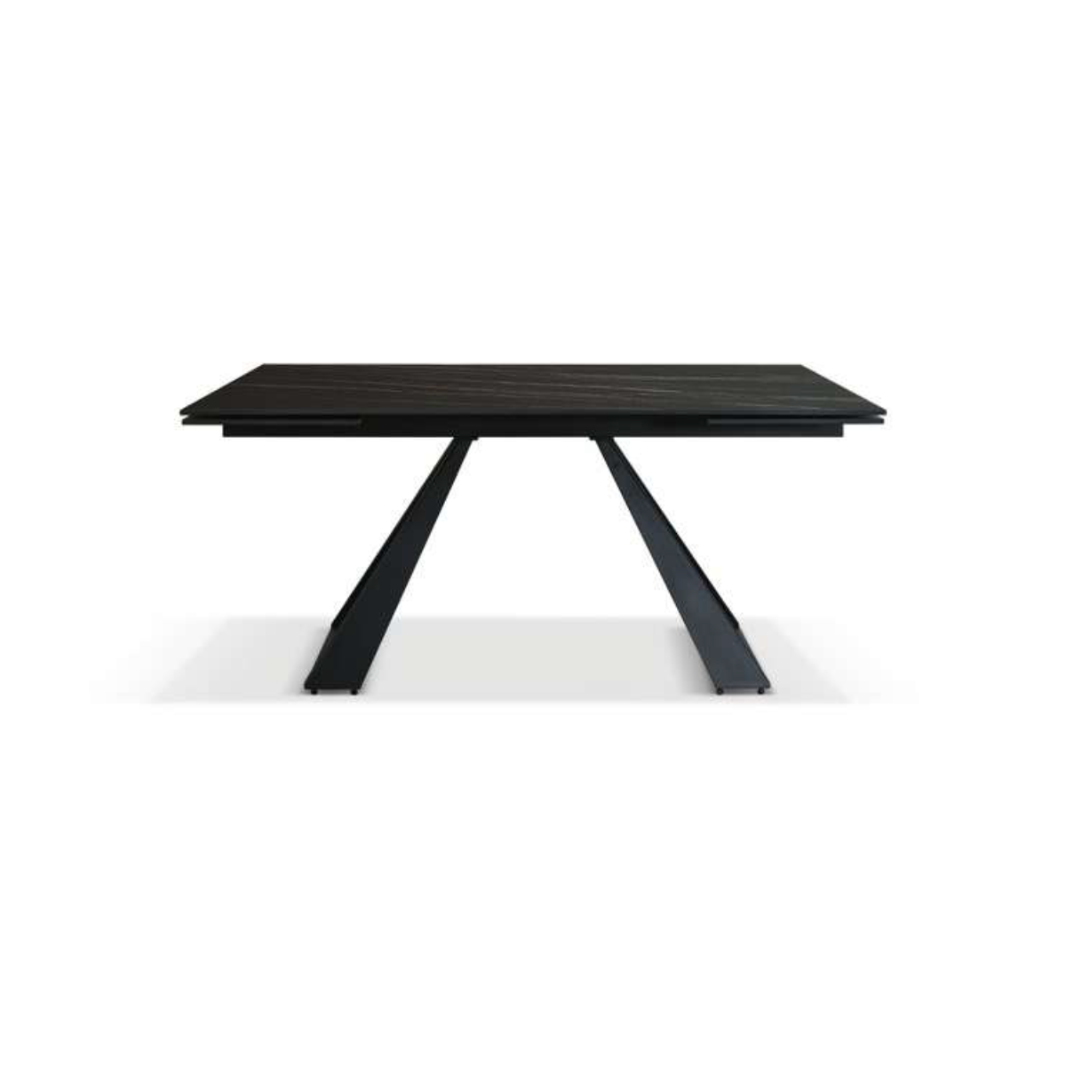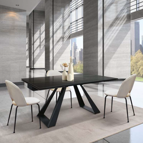 Il Tavolo allungabile GEORGIA di Casa Florida è la scelta ideale per chi cerca un mix perfetto di design contemporaneo e praticità. La struttura in metallo nero conferisce robustezza e modernità, mentre il piano rettangolare in ceramica con finitura matt golden nero aggiunge un tocco di eleganza sofisticata, con la sua superficie opaca che esalta le sfumature di nero e oro, creando un effetto visivo raffinato.