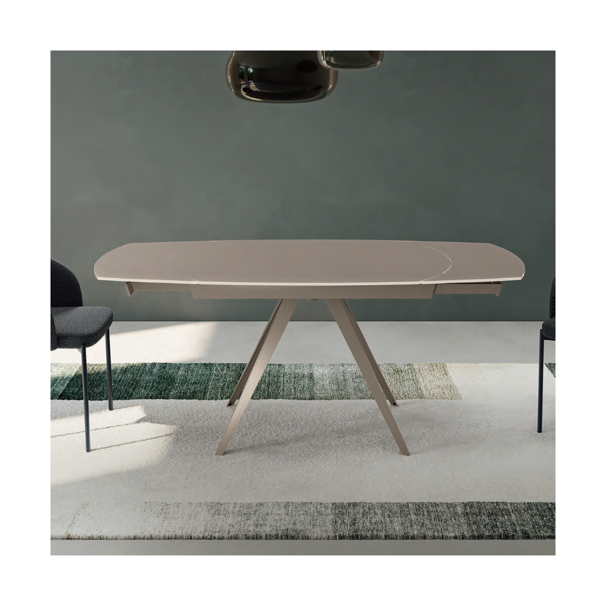 Ma è quando entra in azione che KYOTO 120 svela tutta la sua genialità. Il meccanismo di apertura girevole è fluido, semplice e spettacolare: con un solo gesto, il piano si estende in modo automatico, rivelando le allunghe integrate con eleganza millimetrica. Il risultato? Un tavolo che si adatta perfettamente a ogni occasione, dal pranzo quotidiano alle serate in compagnia, senza mai perdere il suo fascino.