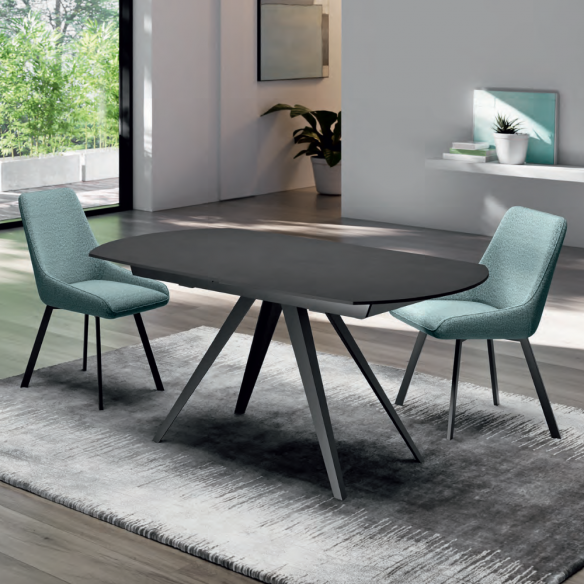 Design sofisticato, meccanismo ingegnoso e materiali di alta qualità: KYOTO è il tavolo allungabile girevole che unisce estetica e funzionalità in un’unica soluzione. La struttura in metallo verniciato dona solidità e leggerezza visiva, mentre il piano, disponibile in ceramica, aggiunge un tocco di raffinatezza contemporanea alla zona pranzo.