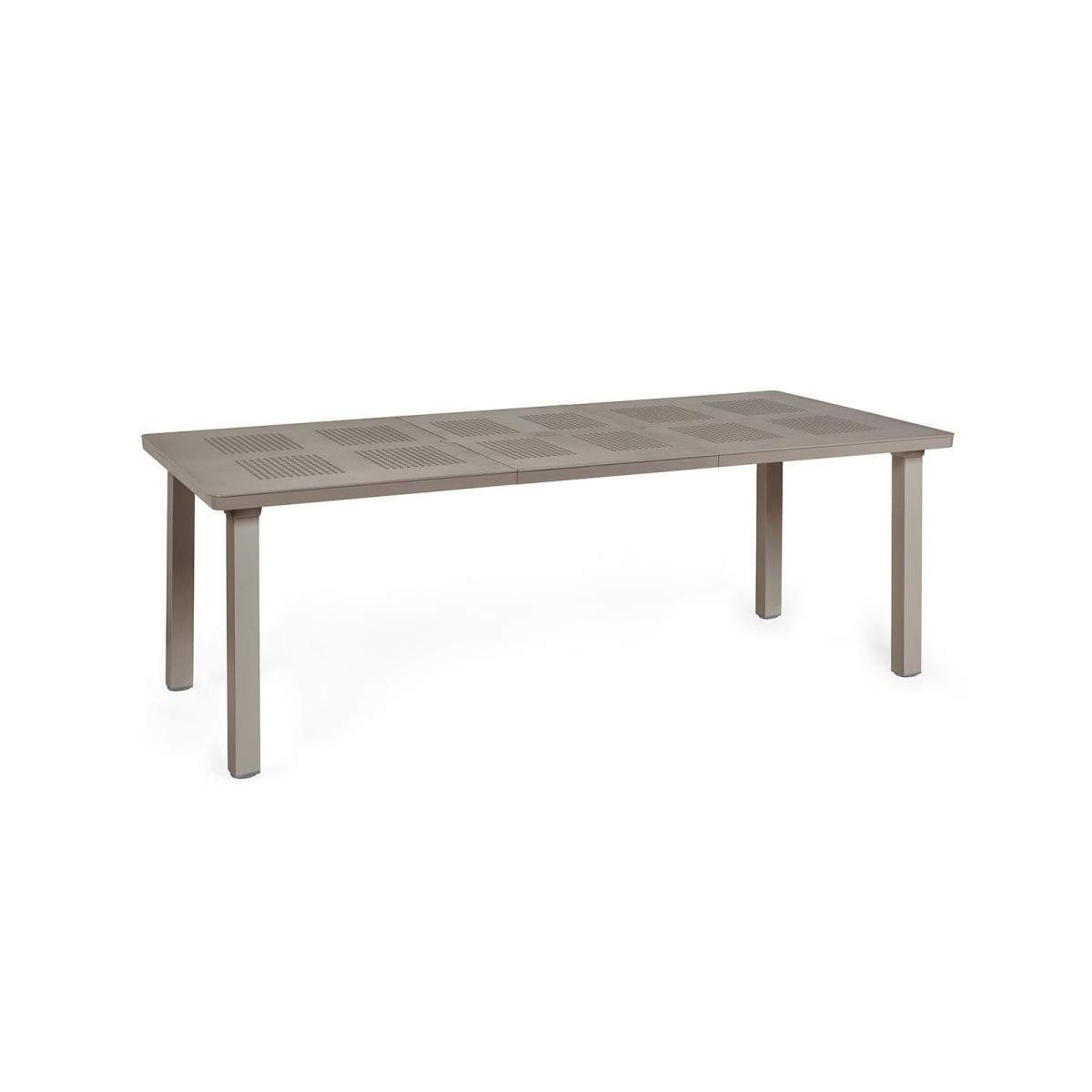 Tavolo Lepanto è dotato di allunga telescopica e con piedini regolabili. struttura in alluminio e piano in polipropilene Rain