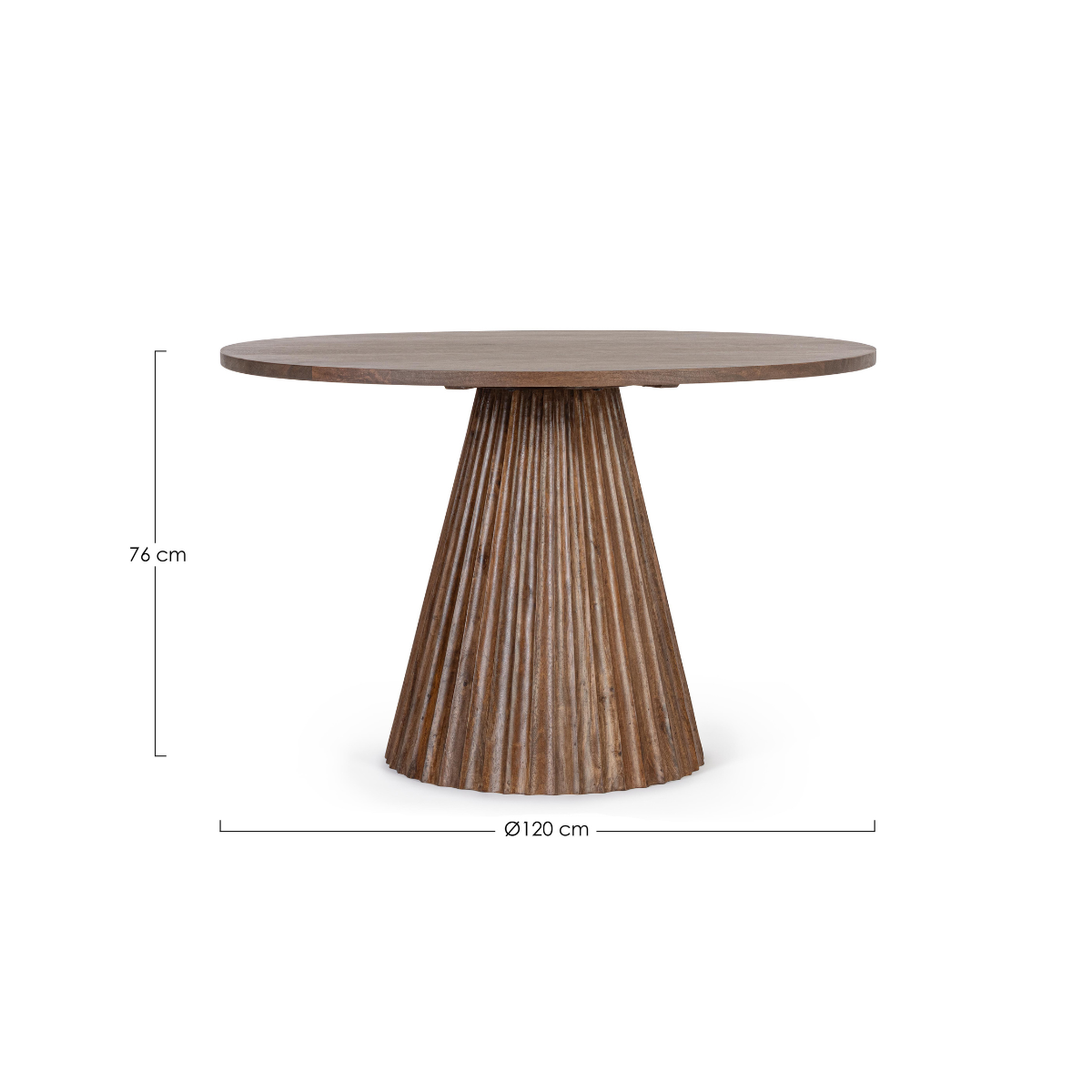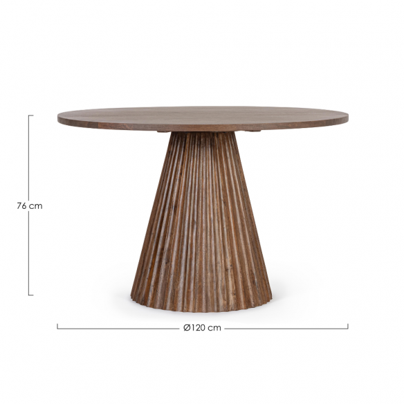 Il tavolo ORISSA D120 unisce la forza materica del legno massello di mango a una lavorazione ricercata e dal gusto contemporaneo. La base scanalata, scolpita con precisione, dona personalità e stile a ogni ambiente, diventando il punto focale della zona pranzo o living.
