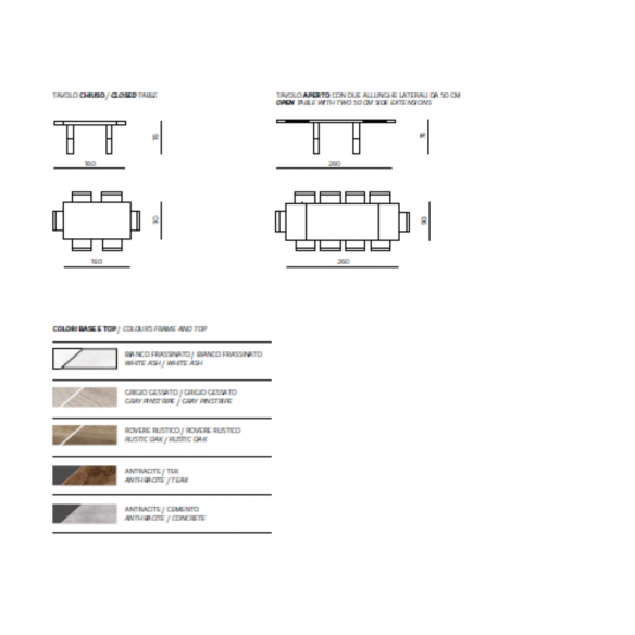 - Chiuso: Altezza: 76 cm/ Lunghezza: 160 cm/ Profondità: 90 cm