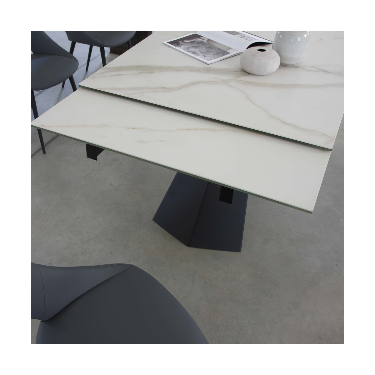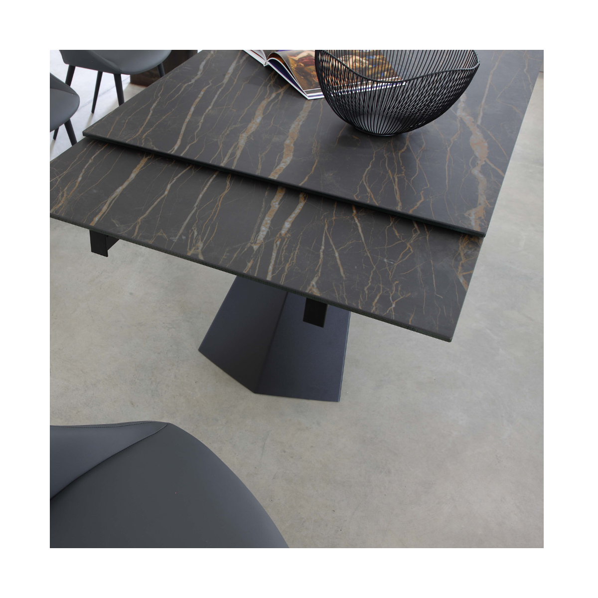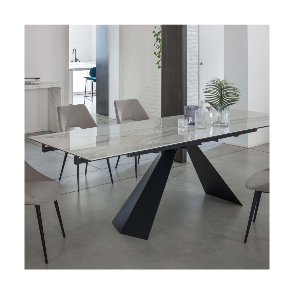 Questo tavolo offre non solo un'elegante estetica, ma anche una grande praticità grazie alla sua funzione di allungamento, perfetto per adattarsi alle esigenze del tuo spazio living.