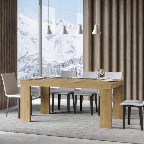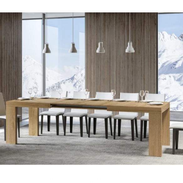 Nella versione 90x180 allungato fino a 440 cm, due allunghe sono alloggiate sotto il piano, mentre le altre tre vanno riposte esternamente.