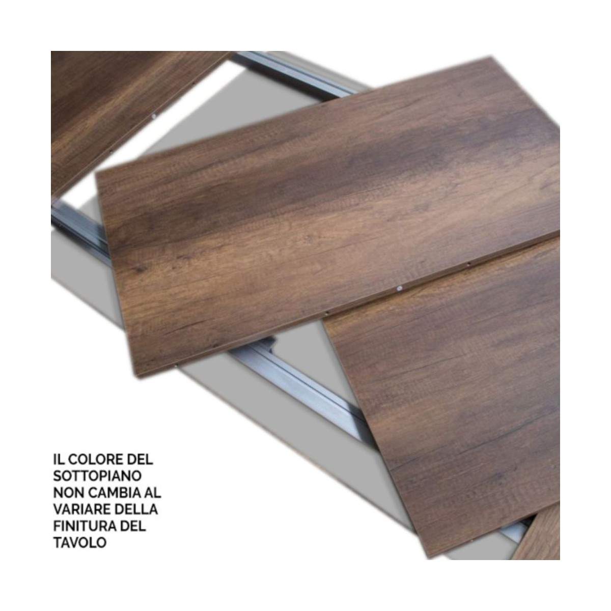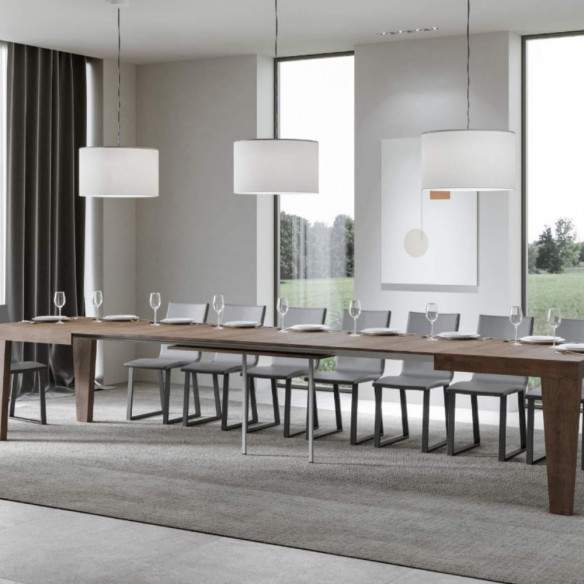 Disponibile in diverse misure, SPIMBO è pensato per essere versatile e modulabile in base alle esigenze. Grazie al suo sistema di estensione semplice e intuitivo, puoi ampliare la superficie del tavolo in pochi gesti: le allunghe sono riposte ordinatamente sotto al piano, sempre pronte all’uso senza ingombri visibili.
