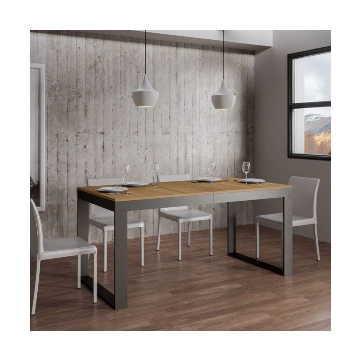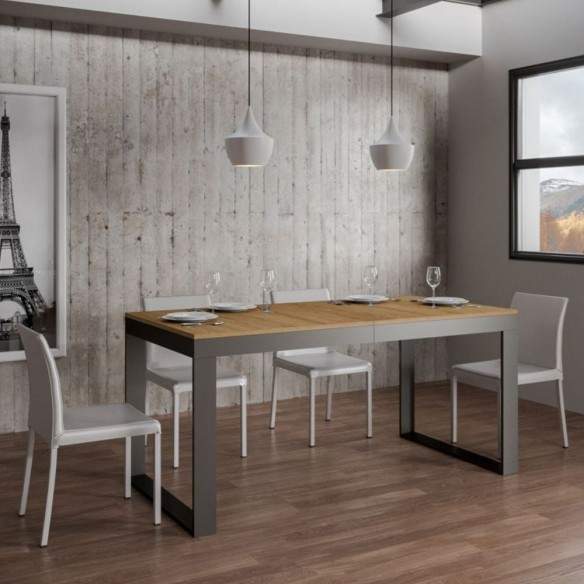 La sua struttura in metallo antracite dona carattere e resistenza, mentre il piano in nobilitato di alta qualità esprime un gusto sobrio ma elegante, perfetto per valorizzare qualsiasi tipo di arredamento.