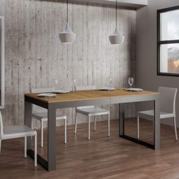 La sua struttura in metallo antracite dona carattere e resistenza, mentre il piano in nobilitato di alta qualità esprime un gusto sobrio ma elegante, perfetto per valorizzare qualsiasi tipo di arredamento.