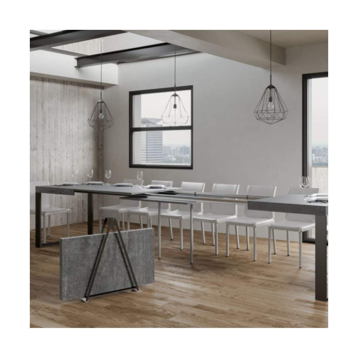 La struttura in metallo antracite assicura stabilità e resistenza, mentre il piano in nobilitato dona un tocco materico e accogliente. TECNO è disponibile in diverse dimensioni e in tre finiture di tendenza — Quercia naturale, Cemento e Noce — per integrarsi con gusto a ogni stile d’arredo, dal più moderno al più caldo e tradizionale.
