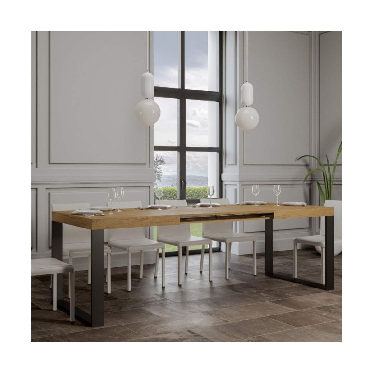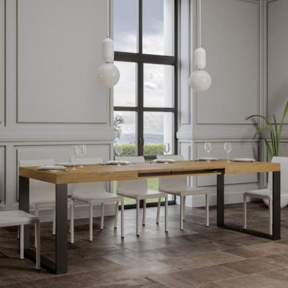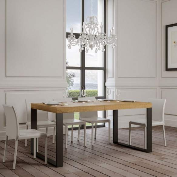 Grazie al suo meccanismo di estensione, il tavolo si allunga facilmente per accogliere più ospiti. Le allunghe non trovano collocamento all’interno della struttura, quindi vanno riposte esternamente, una soluzione perfetta per mantenere la linea del tavolo snella e leggera.
