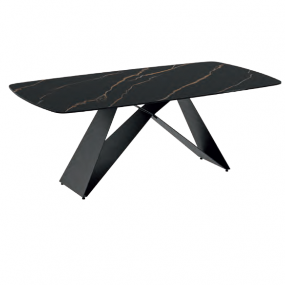 Tavolo fisso THANOS con struttura in metallo verniciato e piano in ceramica.