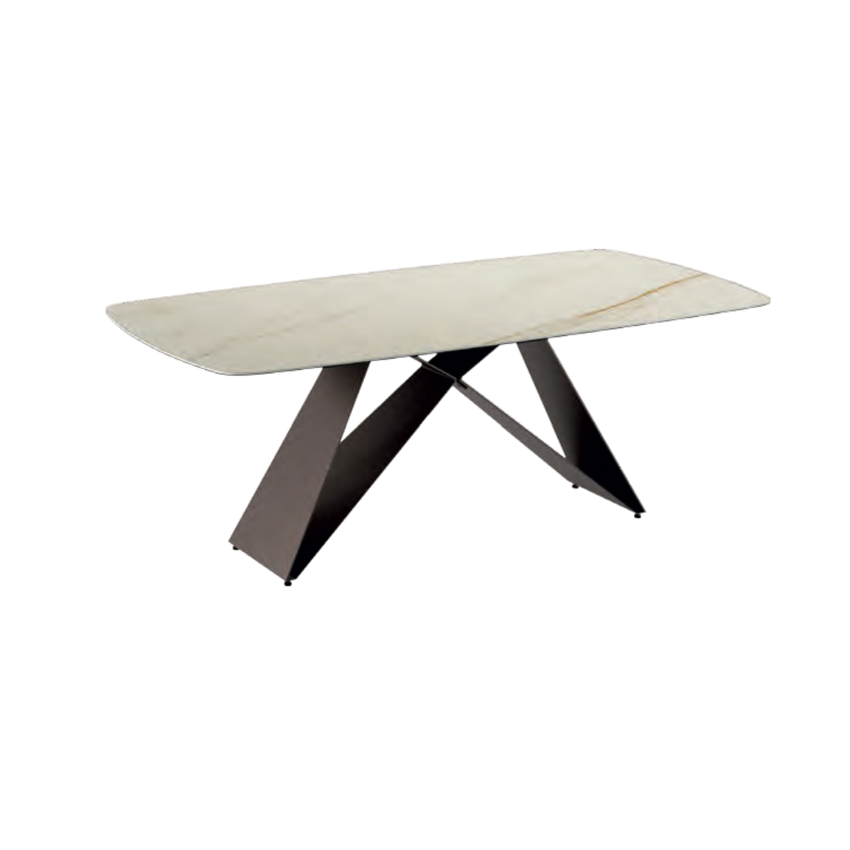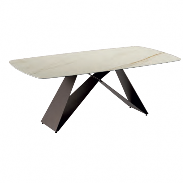 Tavolo fisso THANOS con struttura in metallo verniciato e piano in ceramica.