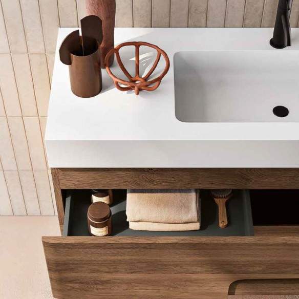 Disponibile in tre misure – 80, 100 e 120 cm – si adatta perfettamente a basi bagno di diverse dimensioni, permettendo combinazioni flessibili secondo le esigenze dell’ambiente. Il design semplice e lineare si integra armoniosamente con lavabi da appoggio o integrati, creando composizioni eleganti e contemporanee.