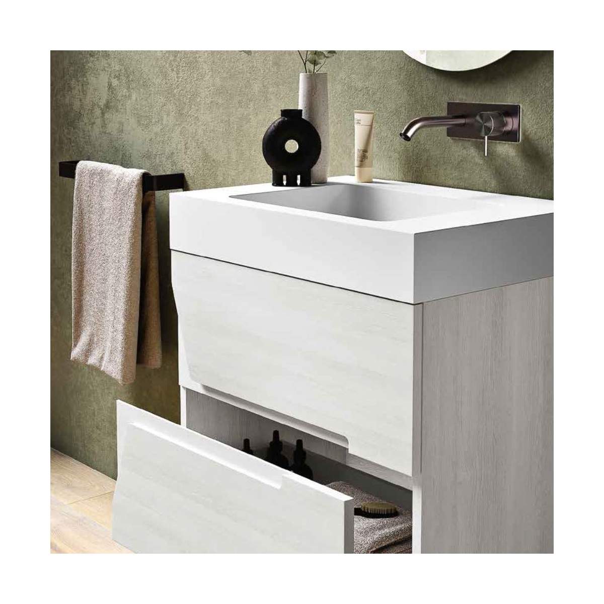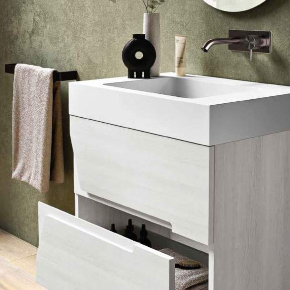 Un top che esprime ordine, luminosità e solidità, perfetto per chi desidera un arredo bagno essenziale ma raffinato.