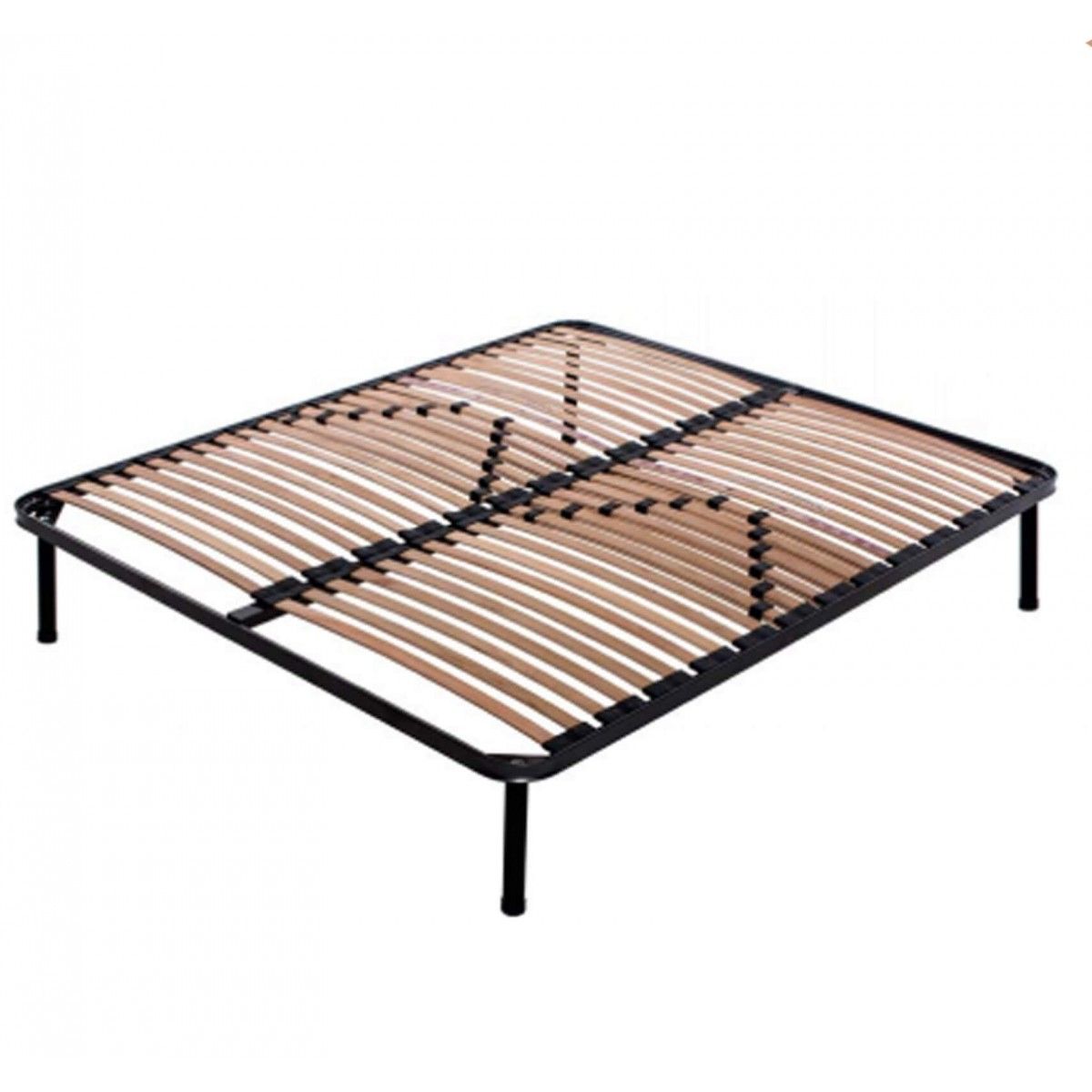 Rete con telaio in acciaio ad alta resistenza con angoli arrotondati, verniciata a polveri epossidiche atossiche. Mini doghe in lamellare di faggio evaporato e curvato a caldo, completa di snodi basculanti in caucciù per sostenere e assecondare armonicamente il corpo. Le doghe di legno non sono trattate con nessun tipo di vernice e sono prive di formaldeide. I piedini in metallo sono avvitabili.