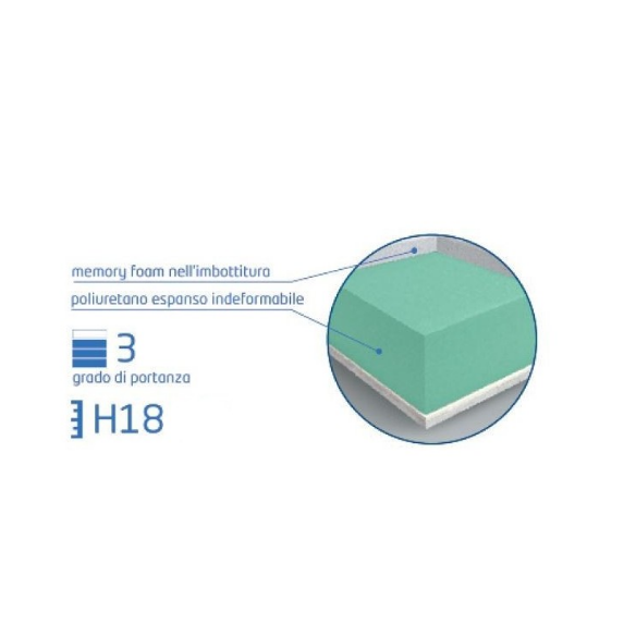 Materasso che combina una struttura in poliuretano espanso indeformabile, con un'imbottitura in Memory Foam di 2,5 cm.