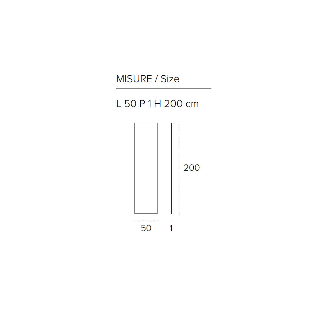 L 50 P 1 H 200 cm
