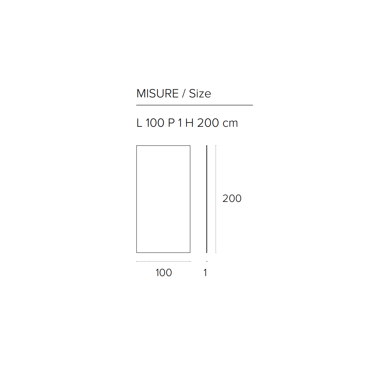 L 100 P 1 H 200 cm