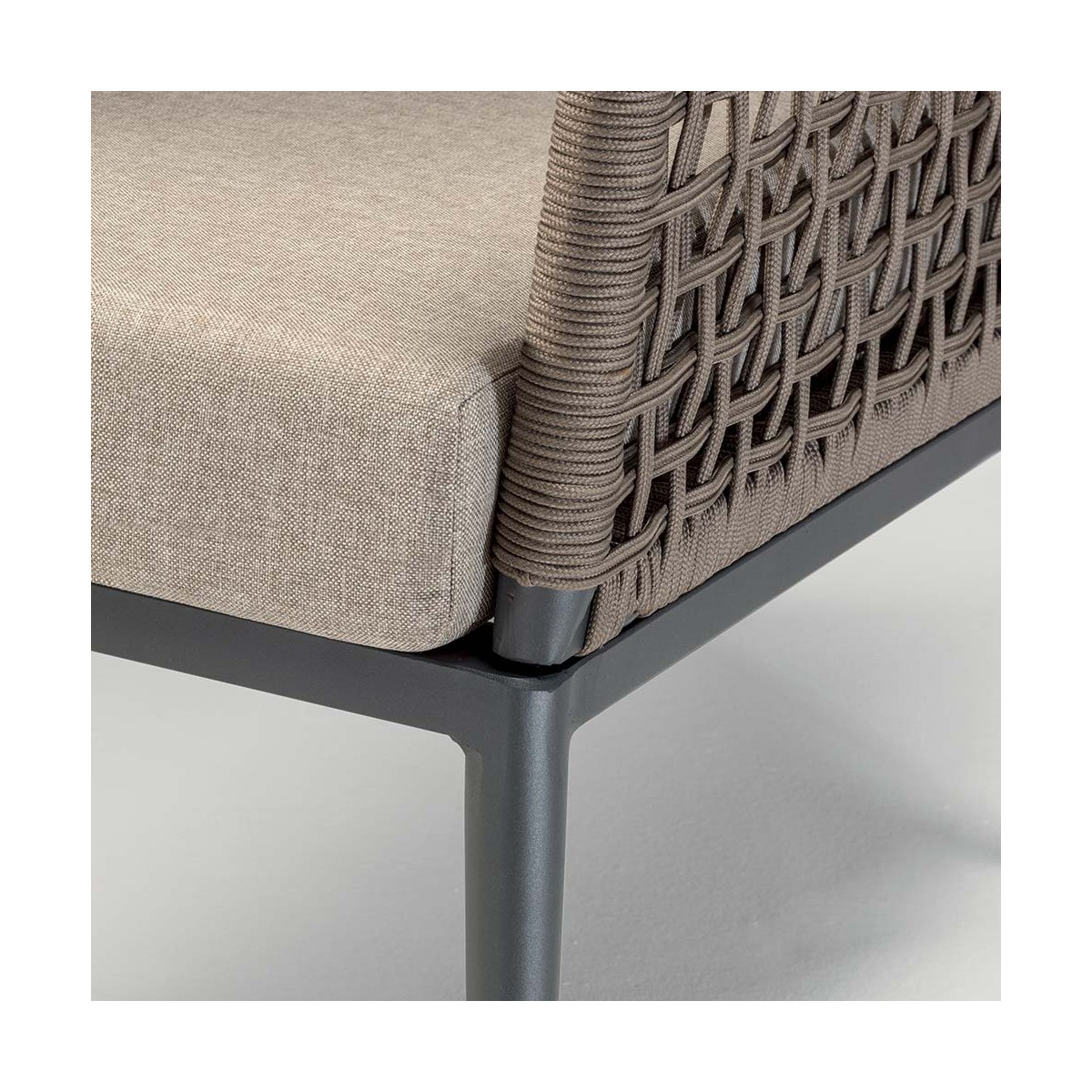 Schienale in corda poliestere di colore Brown: un materiale durevole e traspirante che aggiunge un tocco di stile alla poltroncina.