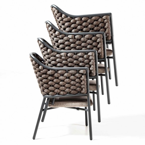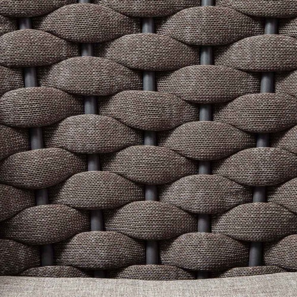 La poltroncina La Seggiola si distingue per il suo design raffinato e la qualità dei materiali utilizzati. La struttura, disponibile in due varianti – antracite con intreccio brown o nera con intreccio antracite – è realizzata in metallo verniciato, resistente e durevole. Il rivestimento in corda poliestere con gomma interna, in tonalità brown, offre un comfort eccezionale e una resa estetica elegante, perfetta per arredare sia interni che esterni.