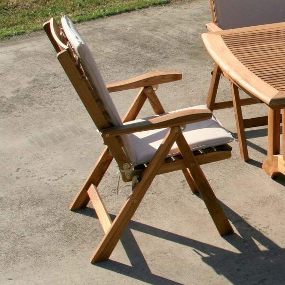 Poltrona da giardino TEAK pieghevole, schienale regolabile, chiudibile e cuscino ecrù idrorepellente.