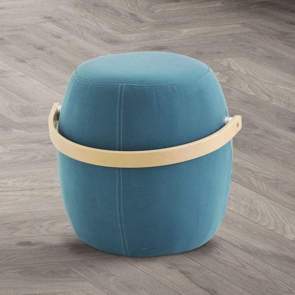 Pouf moderno Bongo La Seggiola in tessuto di lana. Dotato di una pratica maniglia curva in faggio naturale per facilitare il movimento, sarà in grado di fornire vivacità e design.