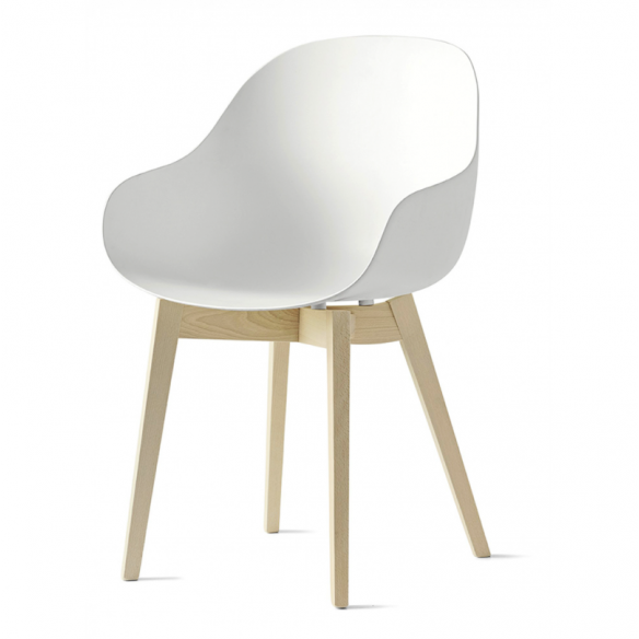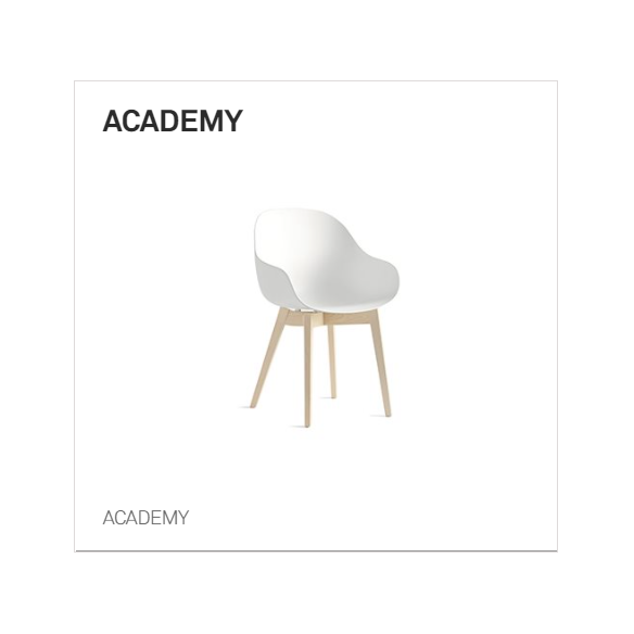 Sedia Academy CB2142 è una sedia/poltroncina realizzata in polipropilene riciclato in 7 varianti di colori, combinata ad un fusto a 4 gambe in legno massello di faggio o frassino.