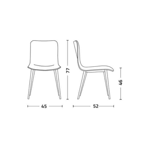 Con dimensioni bilanciate (L 45 x P 52 x H 77, Hs 46 cm), la sedia Dandy.tt si adatta perfettamente a qualsiasi tavolo da pranzo o area living, offrendo comfort e stile senza compromessi.