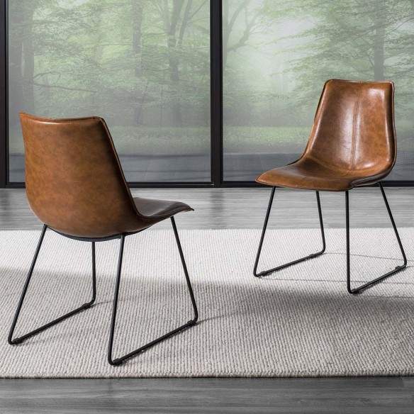 Sedia DUBLIN con struttura in metallo verniciato nero e seduta in ecopelle cuoio vissuto.