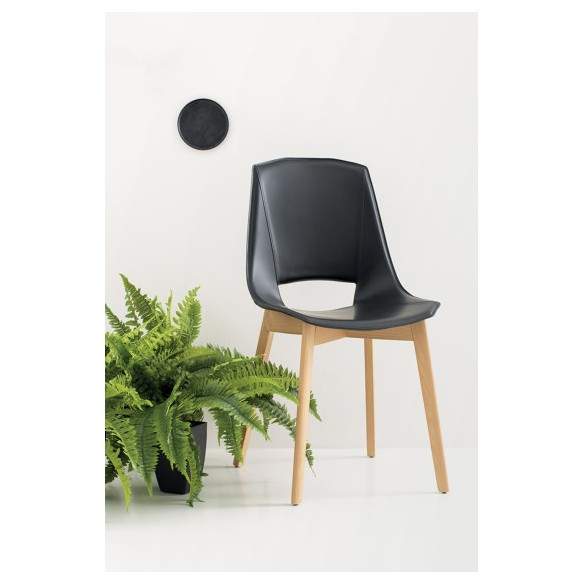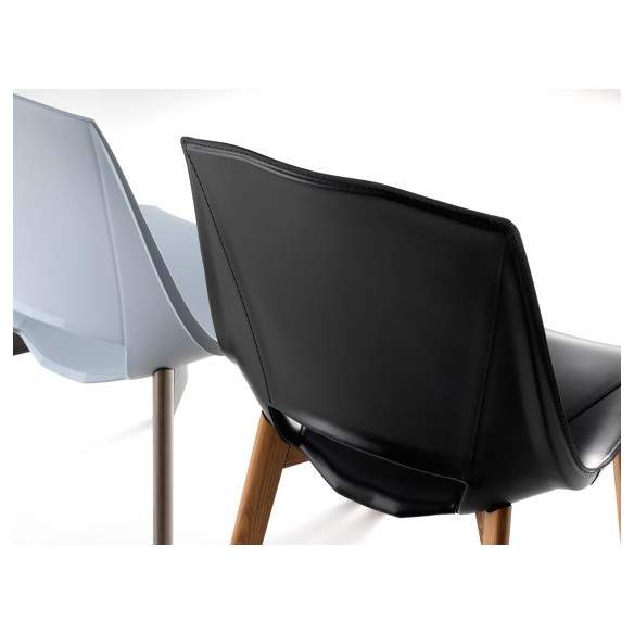 La sedia Eva 5 presenta una scocca realizzata in polipropilene rinforzato con fibra di vetro, che garantisce resistenza e durabilità nel tempo. Può essere rivestita in cuoio rigenerato, pelle o tessuto per un tocco di eleganza e comfort aggiuntivo.
